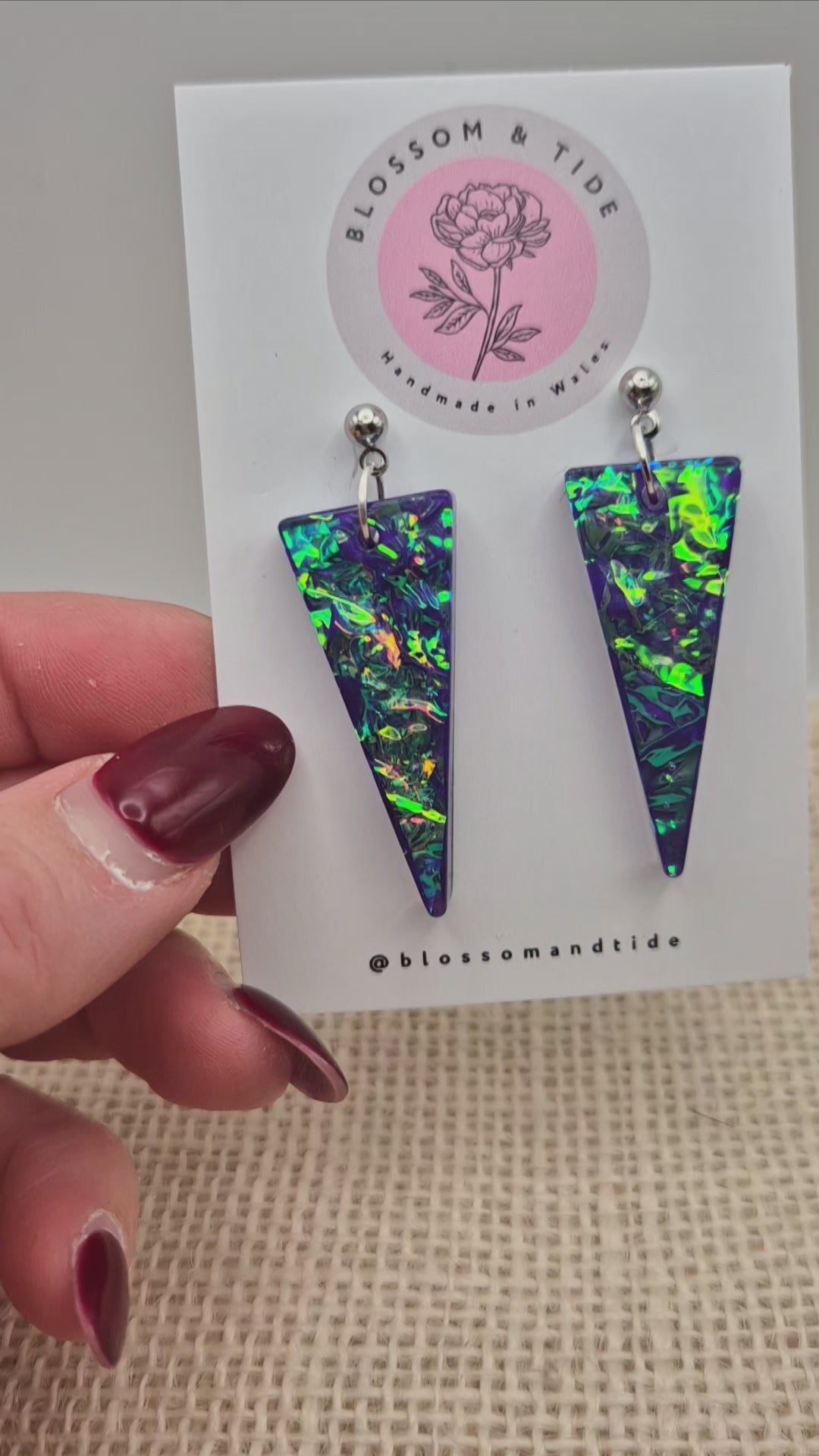 Handmade Purple Triangle Dichroic Resin Earrings | Unique Jewellery from Wales